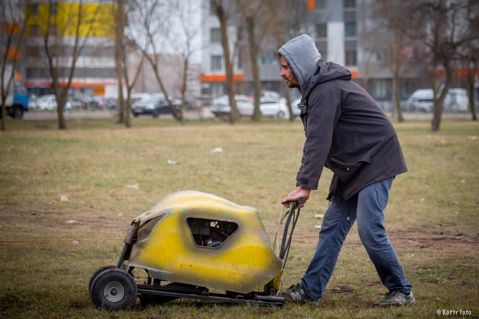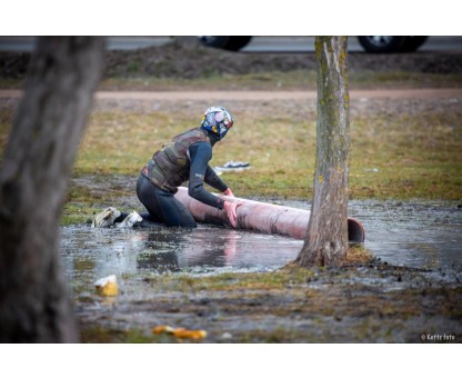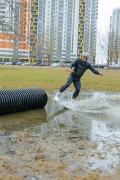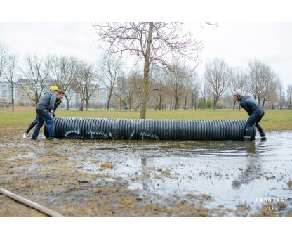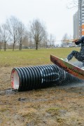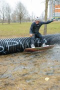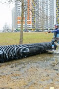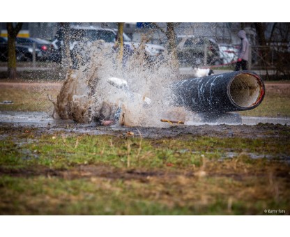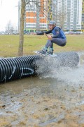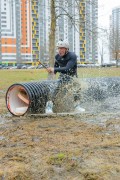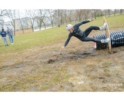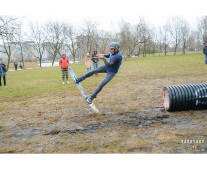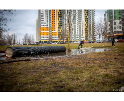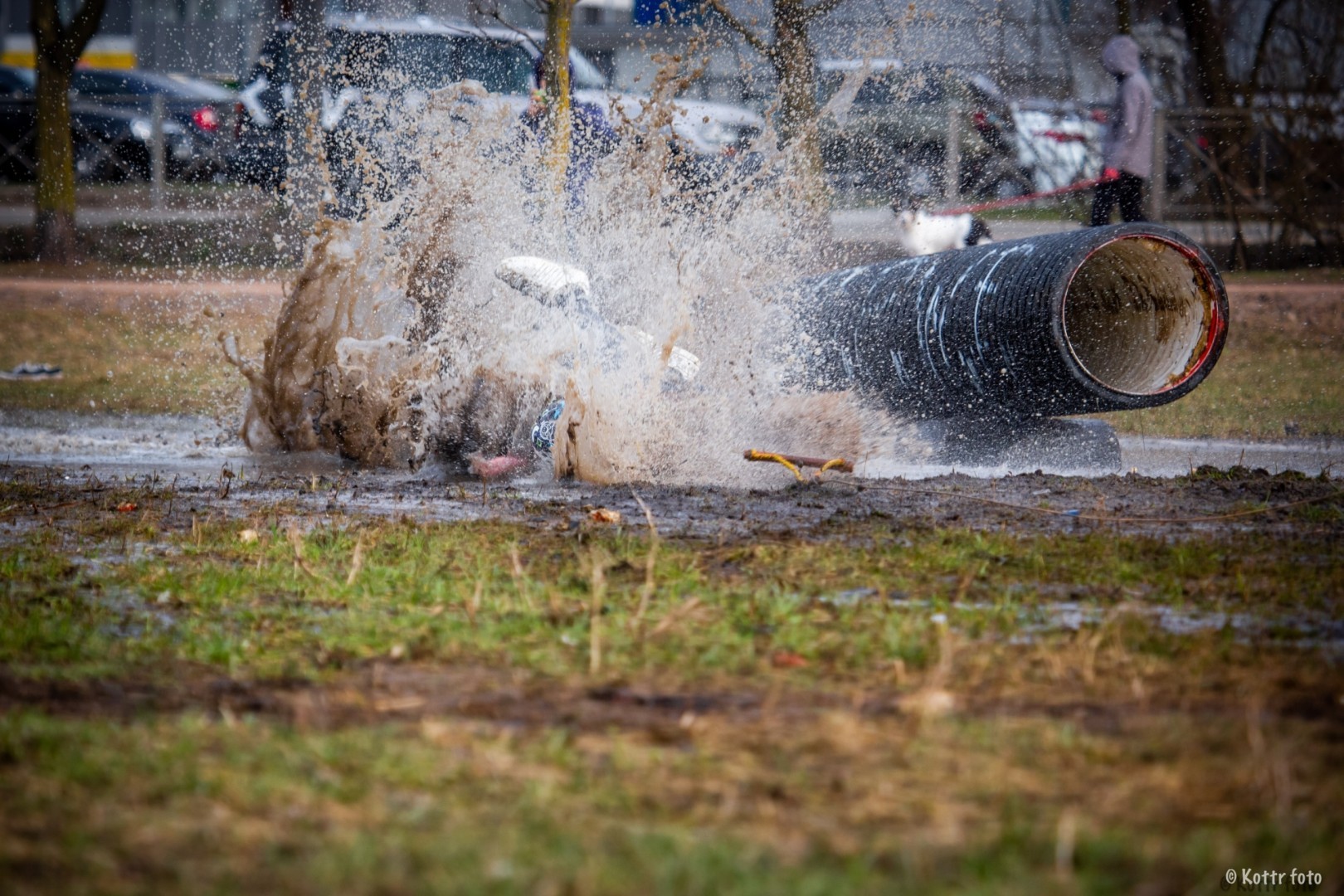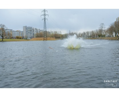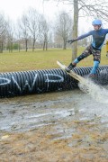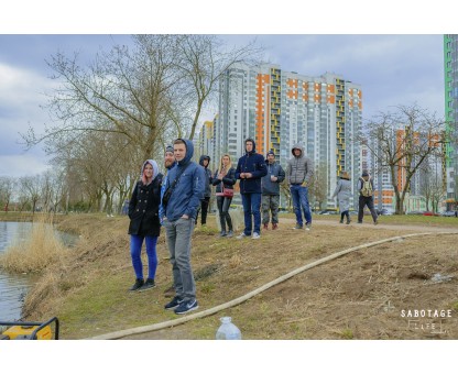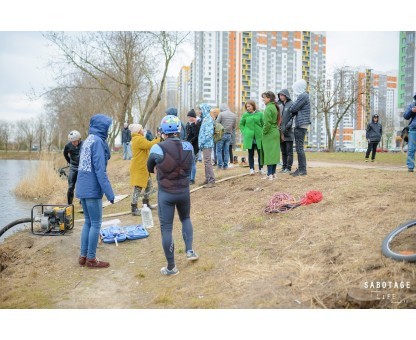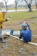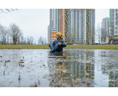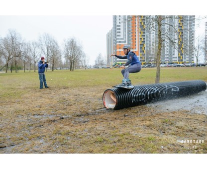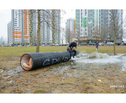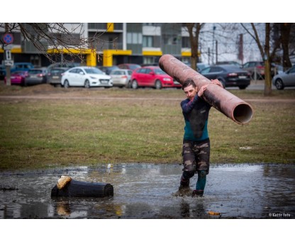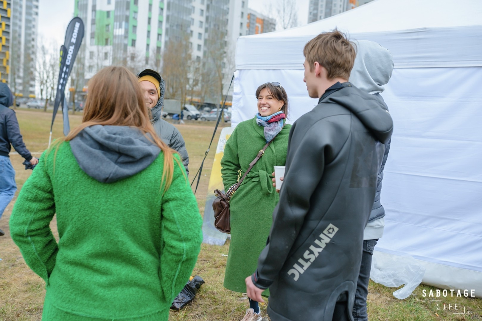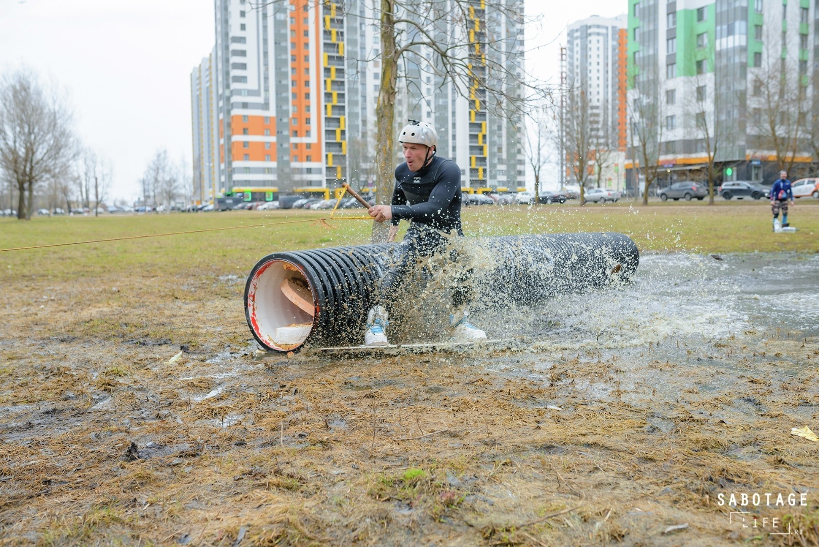 В парке организаторы подобрали подходящую по глубине и длине лужу, в которую установили 2 гофрированные трубы диаметром 600 и 300мм, по которым райдеры-вейкбордисты скользили на досках. Тягу обеспечила портативная канатно-буксировочная установка – лебедка, в простонародье «винч».