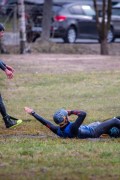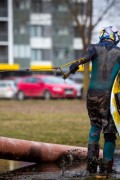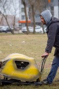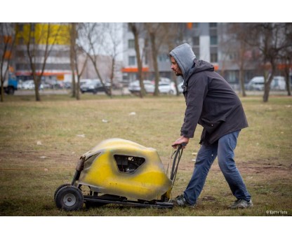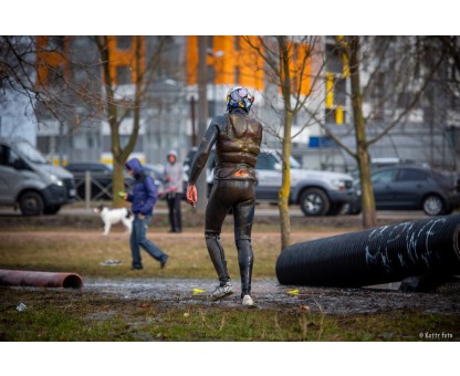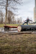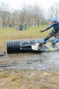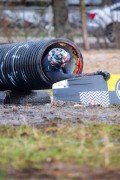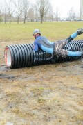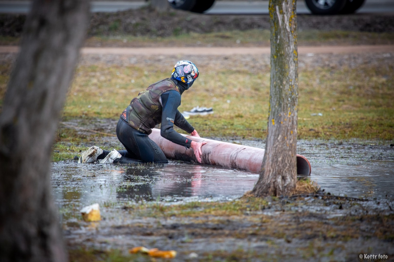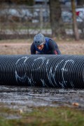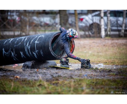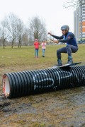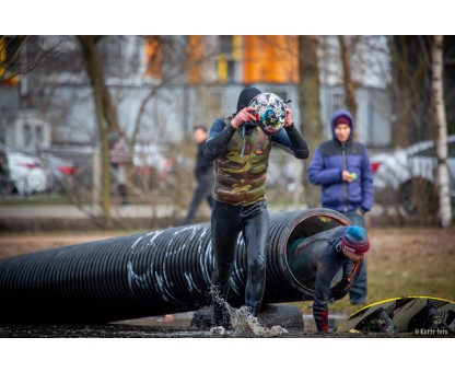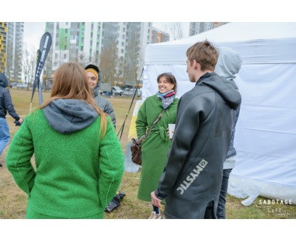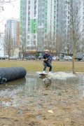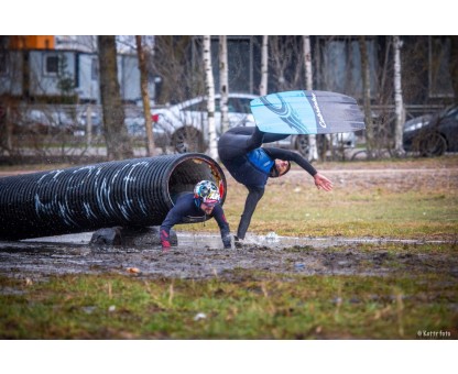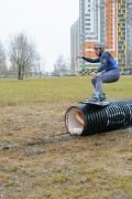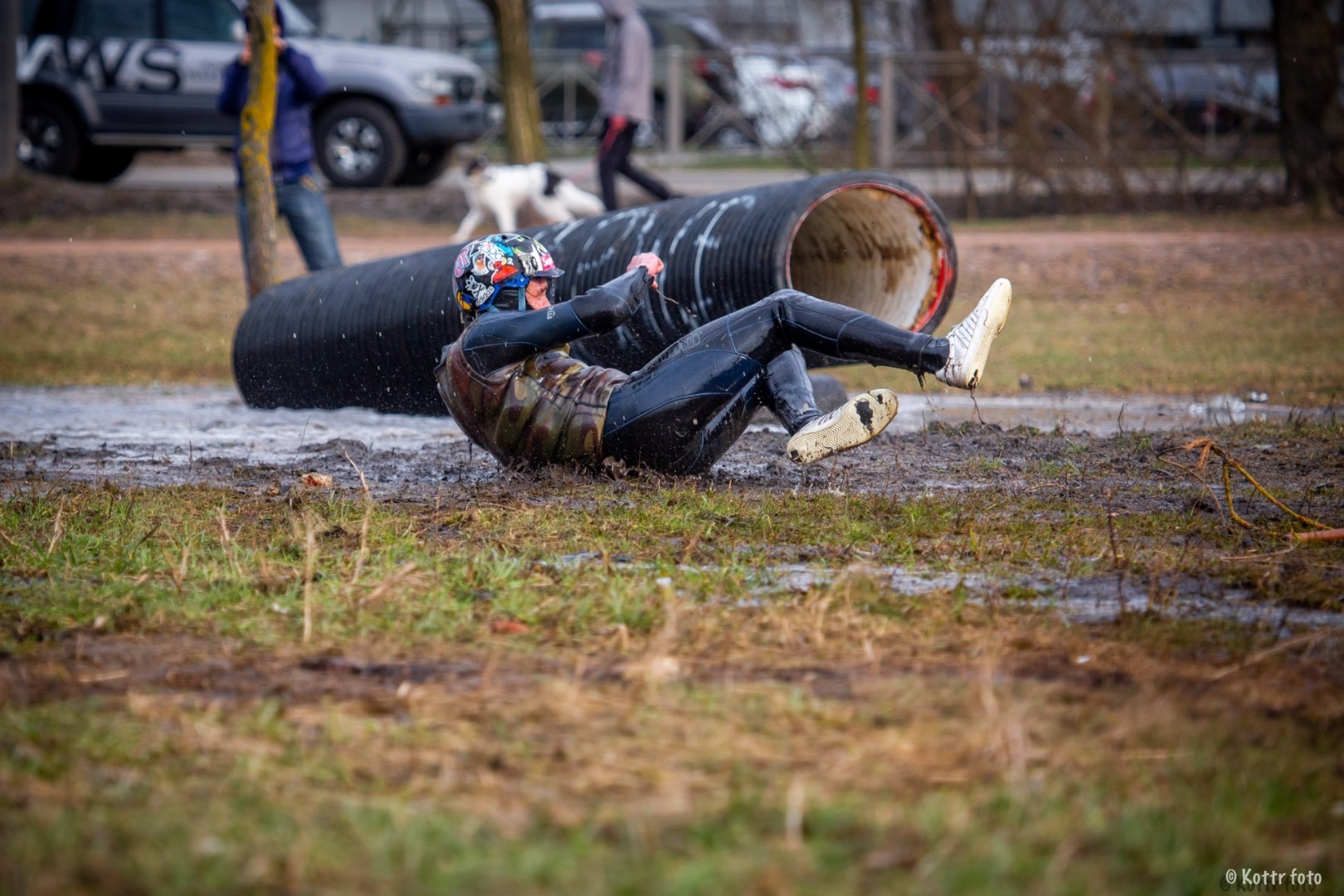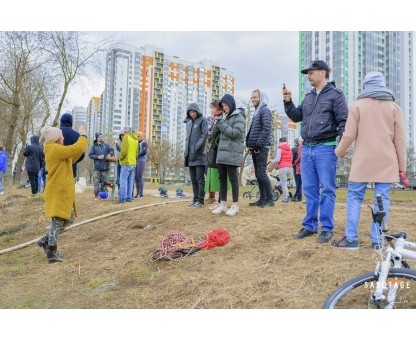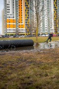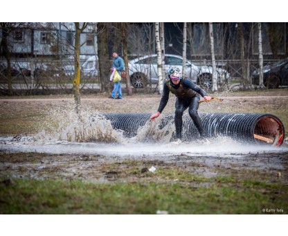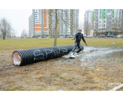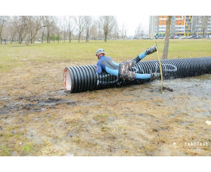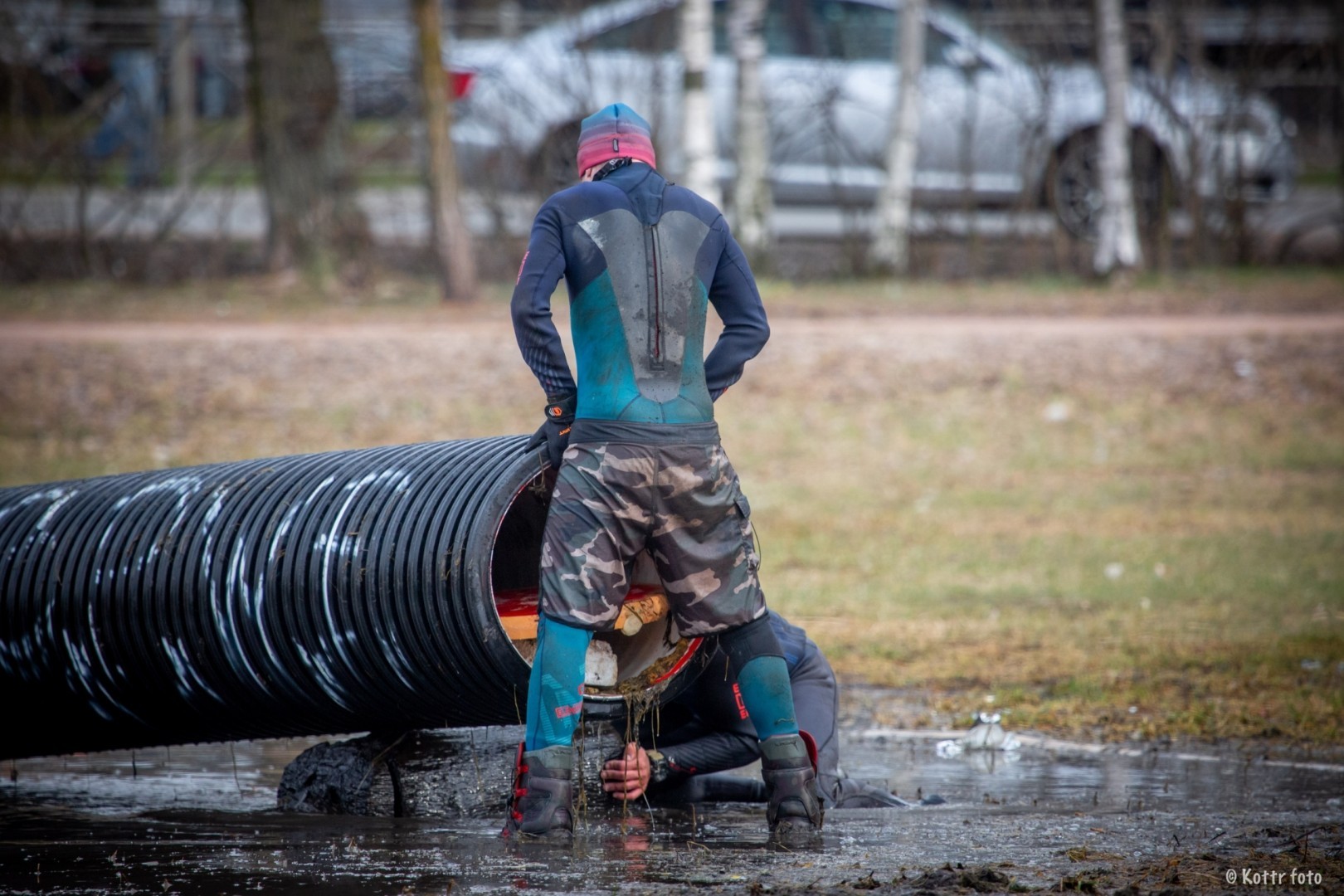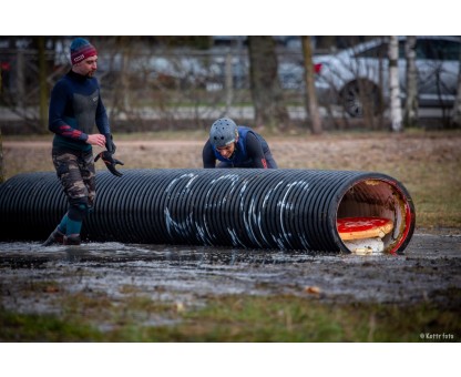 В парке организаторы подобрали подходящую по глубине и длине лужу, в которую установили 2 гофрированные трубы диаметром 600 и 300мм, по которым райдеры-вейкбордисты скользили на досках. Тягу обеспечила портативная канатно-буксировочная установка – лебедка, в простонародье «винч».