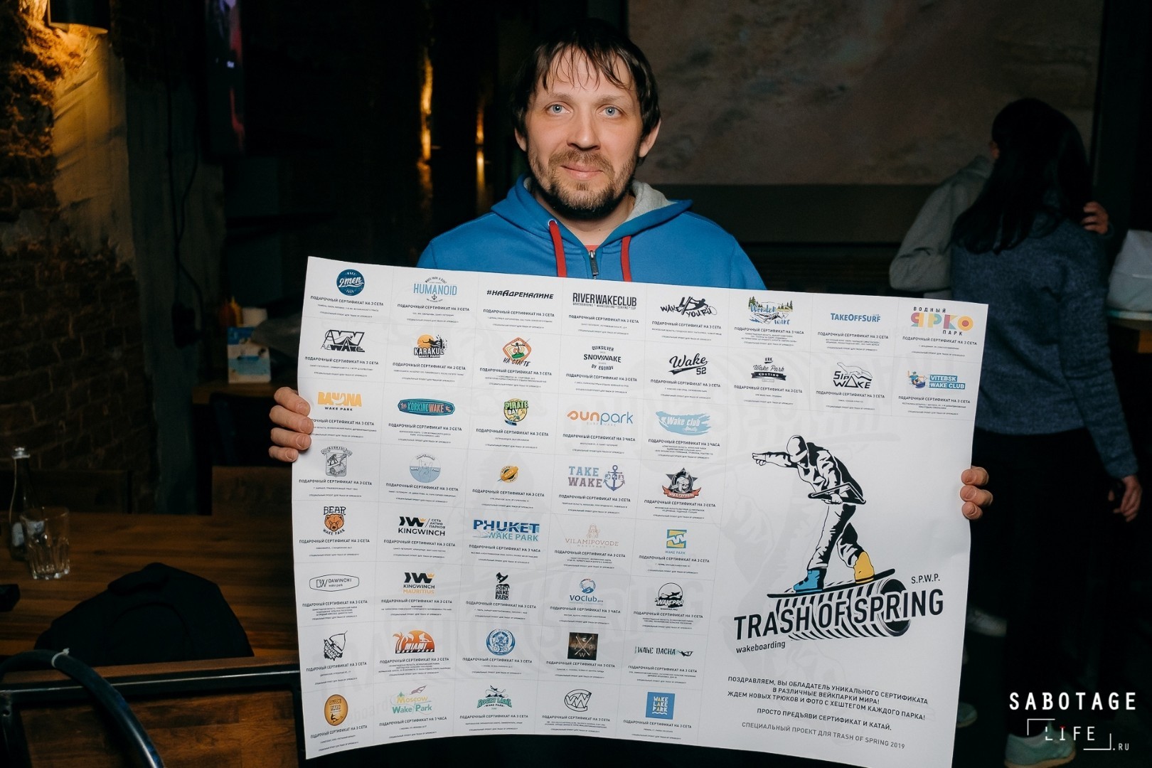 20 апреля 2019 г. в Санкт-Петербурге в парке Интернационалистов в Купчино впервые в истории мирового вейкбординга состоялись соревнования Trash of Spring 2019 по треш-вейкборду категории «джиббинг» на портативной лебедке прямо в весенней луже.